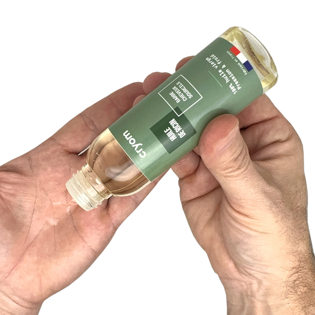 Chez cryom, nous attachons beaucoup d'importance au "Fabriqué en France". L'huile de RICIN pour barbe cryom est fabriquée en France.