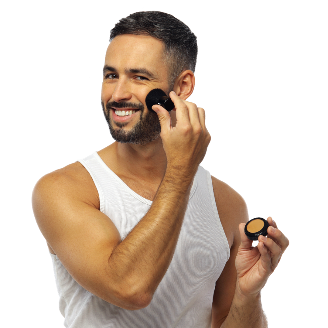 Le secret de ce maquillage miracle est une combinaison subtile de poudres compactes de fard ultra fines, de pigments et d’huiles. Cela donne une texture mate que l’on applique sur le visage avec l’applicateur KABUKI cryom et qui se fond à toutes les peaux masculines le rendant indétectable.