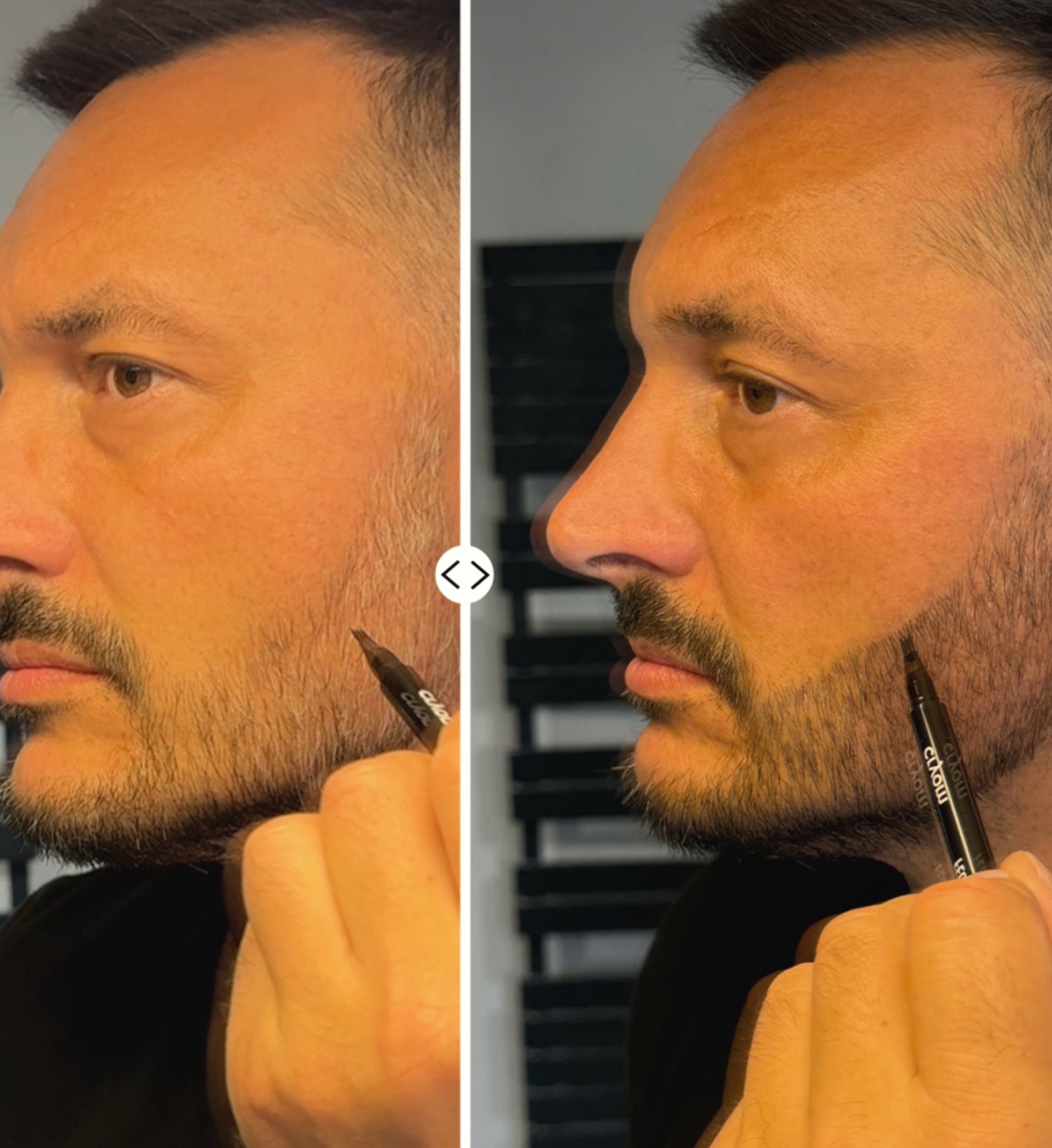 Le feutre Trident et le correcteur de couleur de barbe cryom forment le duo parfait pour avoir une barbe homogène, fournie, sans trou, avec des contours de lignes parfaitement nets et aucun poil blanc.