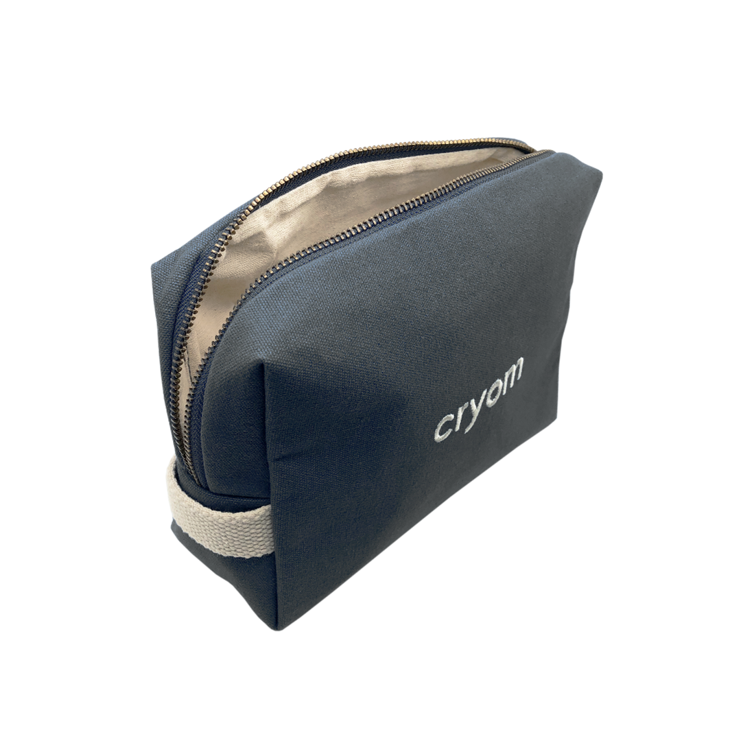 - La trousse de toilette week-end : en coton 100% biologique labellisé GOTS. CRYOM a confié la fabrication éthique et responsable de cette trousse à l’ONG Indienne SSMI (Swami Sivananda Memorial Institute) qui se bat pour l’émancipation des femmes des quartiers défavorisés de DELHI et qui les rémunère 3 fois le salaire local.