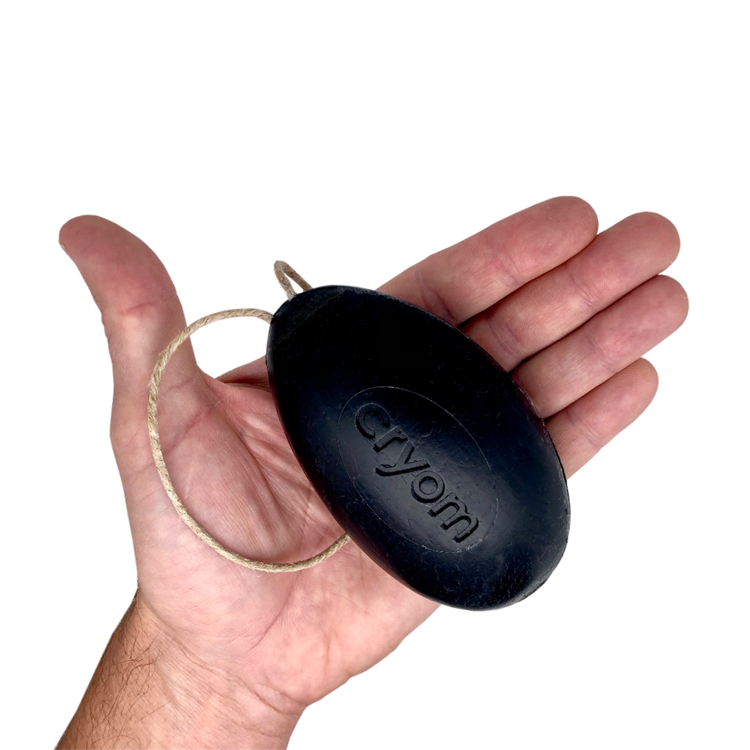 - Le savon galet cryom est fabriqué, artisanalement dans le sud de la France, avec une formulation à base de charbon végétal, d’huile essentielle de gurjum et enrichi à l’huile d’argan BIO.