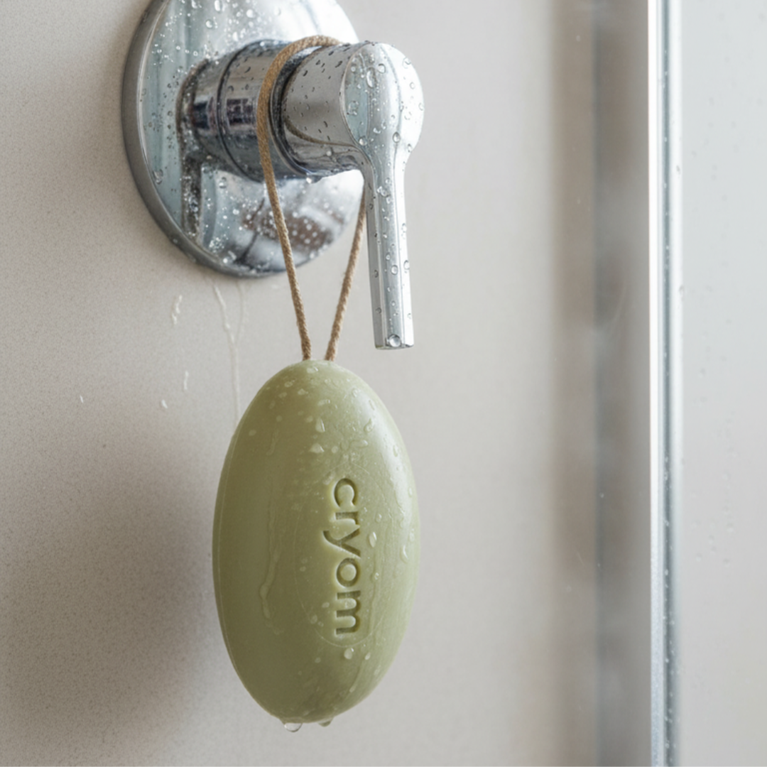 En forme de galet, les savons cryom offrent une meilleure prise en main lors de leur utilisation et leur cordelette intégrée permet un séchage sans contact. Ainsi suspendu, on évite la formation de bactéries et le savon se conserve plus longtemps.